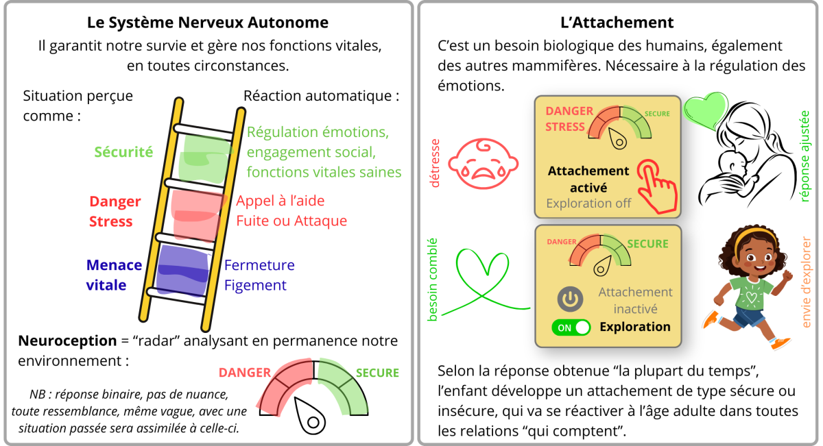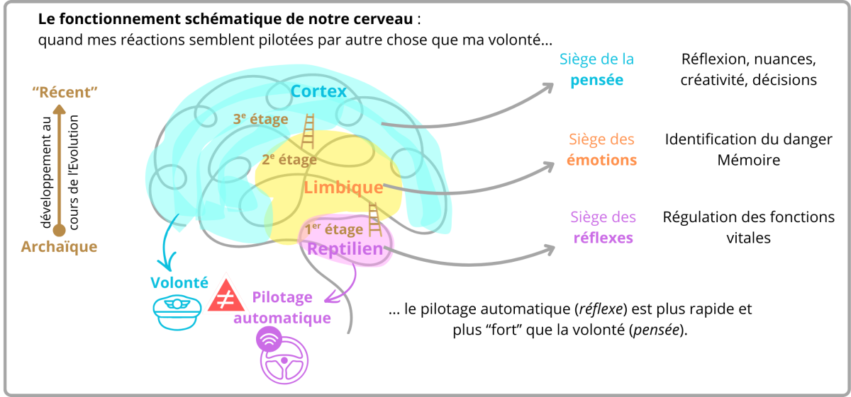 Voici quelques illustrations pour décrire de façon simplifiée le fonctionnement de notre cerveau et les notions de Système Nerveux Autonome et d'Attachement, qui sont à la base de la thérapie IR :